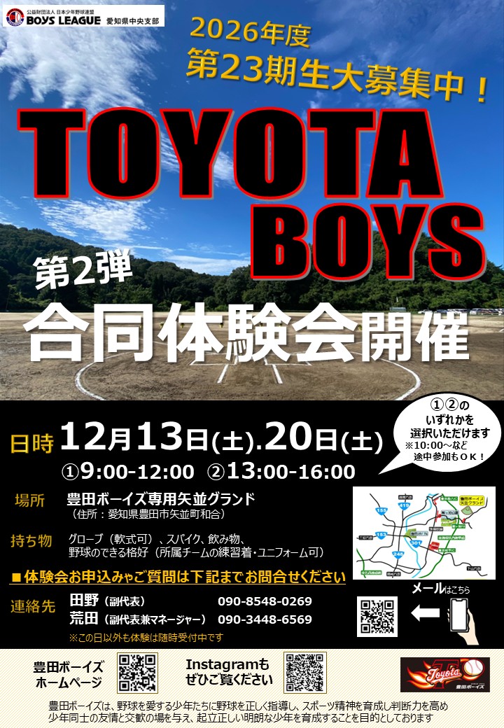 豊田ボーイズは、野球を愛する少年達に野球を正しく指導し